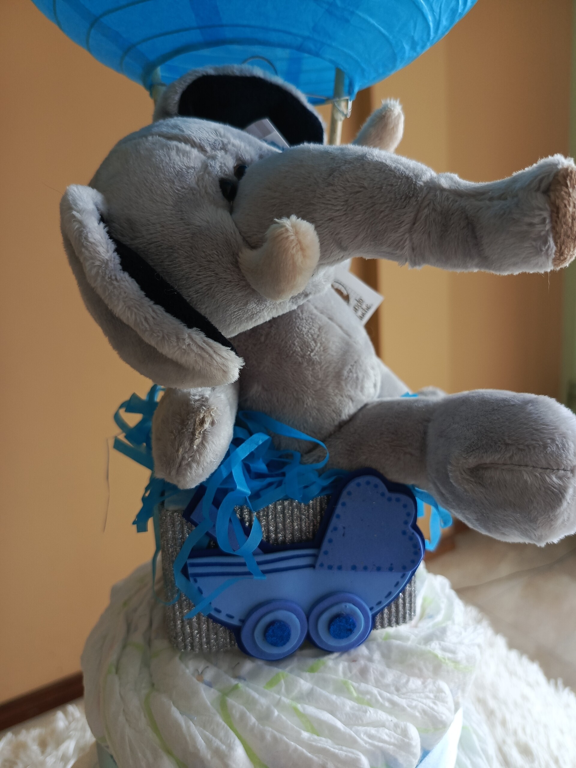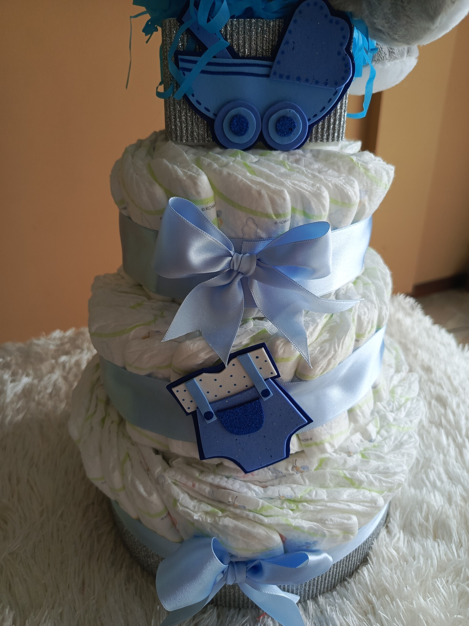 Hermosa torta de pañales, ideal para baby shower o primera visita.
