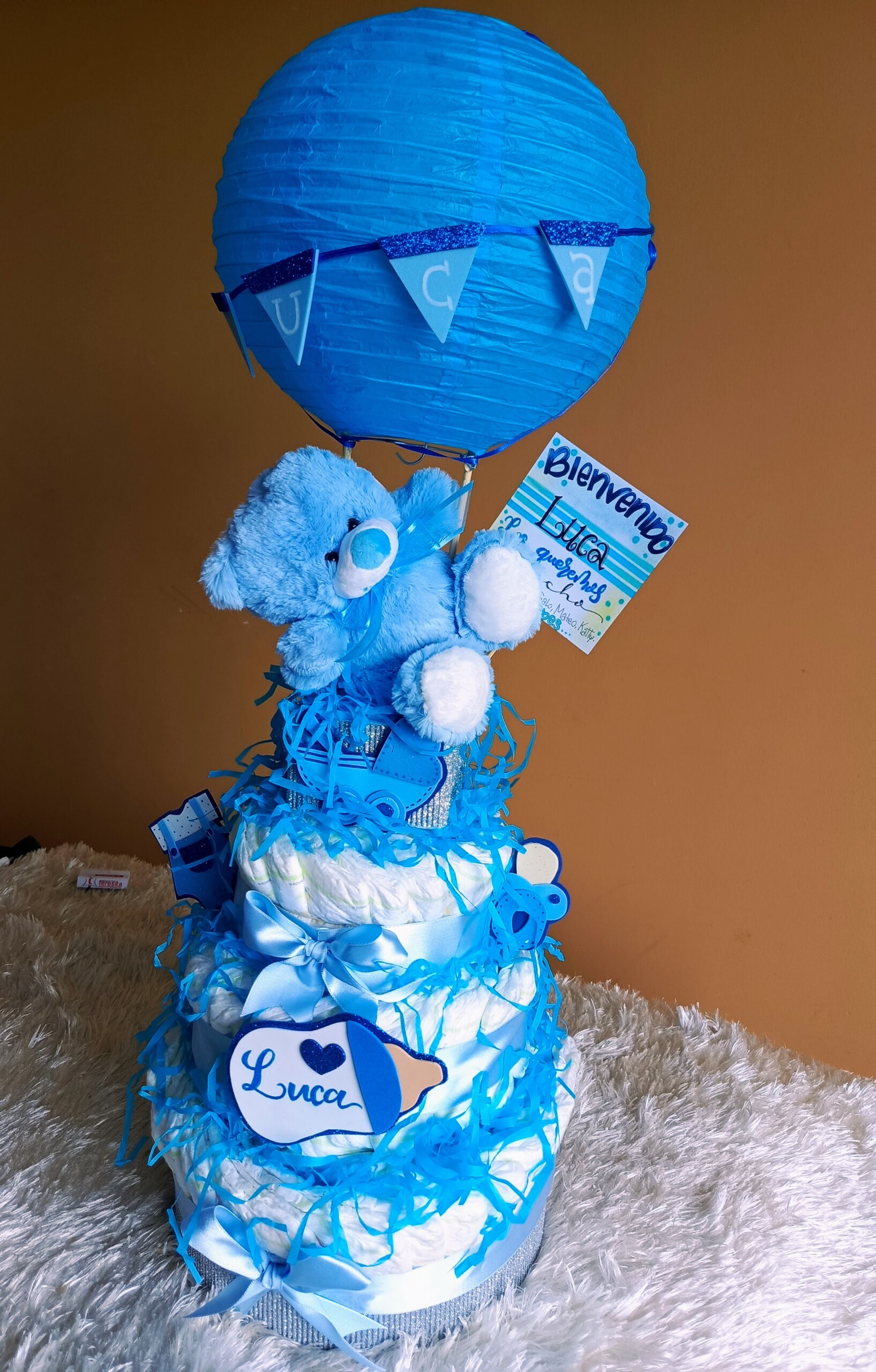 Sé el primero en valorar “Regalo Personalizado Torta de Pañales 3 Pisos con peluche”